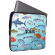 Capa Para Notebook Monograma adorável peixe do oceano Padrão azul mod