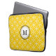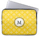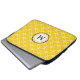 Uma bolsa de laptop com um design geométrico em amarelo-limão e branco para personalizar com a sua inicial.