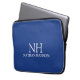 Bolsa de laptop moderna com um design azul simples e mínimo com seu monograma em uma fonte em negrito junto com seu nome.