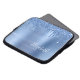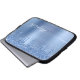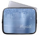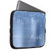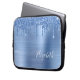Bolsa de laptop cônica personalizada e giro com brilho azul esmaecido pingando um fundo metálico azul esmaecido. Monograma com seu nome em um script na moda branco.
