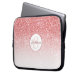 Esta bolsa de laptop rosa dourada apresenta um design cintilante rosa dourado falso com um monograma redondo com uma borda falsa de folha de ouro rosa. Personalize-o com seu nome e inicial.