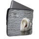 Esta bolsa de laptop mostra uma fotografia de um cisne mudo na água. Adicione seu nome inicial a um presente personalizado para você mesmo ou qualquer amante da vida selvagem!