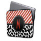 A Bolsa de laptop de Monograma Personalizar Padrão Preto de Stripe Branca Vermelha é uma tendência e na moda para segurar o seu Laptop. Excelente de adicionar esse toque especial ao seu laptop ou dar como presente. Excelente para a sua. Personalize-o com a sua inicial.
