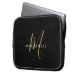 Bolsa de laptop de Monograma de Script Dourado Preto Moderno Elegante. Um monograma elegante de script dourado combinado com uma fonte branca de san-serif limpa faz uma aparência contemporânea.