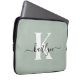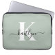 Esta simples e elegante bolsa de laptop verde de sábio de 13" com seu primeiro nome em uma letra de script de tendência em preto e sua primeira inicial em uma fonte moderna de boné em branco é perfeita para você. É na moda e moda e, no entanto, muito clássico. É único, como você!