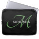 Capa Para Notebook Monograma de Script Verde Preto Moderno Elegante
