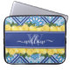 Limões na moda e Azulejos azuis mediterrânicos Bolsas de laptop monogramas. Limões de aquarela exclusivos e tradicionais, folhas verdes sobre fundo de azulejo azul com um modelo de monograma personalizado e um nome de script de caligrafia elegante modelo. Este bonito cobrir botânico verde, amarelo, azul e branco faria um presente pensativo para a mãe, filha, avó, etc.