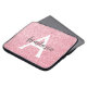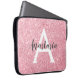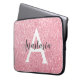 A cor rosa-rosa-rosa-rosa-chic e-glam brilha-se com a manga metálica do computador, com um monograma grande e branco inicial e seu nome personalizado em uma fonte elegante de cinza. Personalize esta manga do computador com seu nome ou monograma inicial. Você pode alterar a cor do texto, o estilo e o tamanho da fonte usando a opção personalizar.