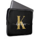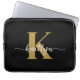 Esta simples e elegante bolsa de laptop preta de 13" com seu primeiro nome em uma letra de texto de tendência em branco e sua primeira inicial em uma fonte moderna de boné em ouro é perfeita para você. É na moda e moda e, no entanto, muito clássico. É único, como você!