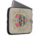 Proteja o seu laptop com uma manga de açúcar no crânio de hipster de tendências. Um crânio açucarado com várias flores e rosas, com um design legal urbano funk, com espirais de ornamentado e padrões de textura antigos. Um quadro de vinha cerca o crânio. Textura falsa de burlap. Celebre o Dia dos Mortos ou o Dia de los Muertos no México com este esqueleto único calavera. Perfeito para festas e comemorações. Clique em Personalizar para adicionar um monograma ou nome, alterar cor ou fonte— e crie o seu único design! Por Marisu Valencia™.