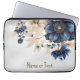 Monograma Nome Marinho Ouro Azul Branco bolsa de laptop Floral. Único, bonito, na moda design. Fácil de ser personalizado. O estilo, o tamanho e as cores da fonte podem ser alterados. Itens correspondentes disponíveis.