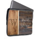 Cobrir seu laptop não tão agradável com o estilo clássico da bolsa de laptop do Monograma da Madeira Rústica. Personalize com seu nome e monograma.