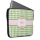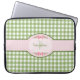 Uma caixa bonito do laptop do monograma do guingão do verde do estilo country 15 polegadas com uma etiqueta cor-de-rosa do guingão e uma fita cor-de-rosa filigrana feminino. Personalize adicionando seus nome e iniciais. Apelará à menina à moda e feminino.