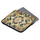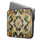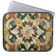 O produto apresenta um trabalho de arte de mosaico impressionante com padrões intrincados e tons de terra. O design é floral simétrico no centro, radiando para fora com folhas, vinhas e formas ornamentais. A paleta de cores inclui tons de verde, bege, marrom e ouro, criando uma aparência natural e harmoniosa. A estrutura global é delimitada por um quadro retangular composto por pequenos azulejos, que acrescenta uma sensação de exaustividade e elegância. O artesanato parece detalhado e sofisticado, combinando elementos geométricos e orgânicos.