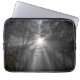 Uma fotografia captura uma cena de tirar o fôlego de uma floresta densa banhada à luz eérea. O sol, escondido atrás de um véu de nevoeiro, lança feixes radiantes através das árvores, iluminando o ar sujo. Os galhos das árvores, silenciados contra a luz brilhante, criam uma sensação de profundidade e mistério. O humor geral é sereno e tranquilo, evocando um sentimento de paz e maravilha.