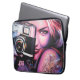 Um grafite moderno de arte urbana de uma mulher com uma tatuagem rosa bonito segurando uma câmera. Linda arte de rua no seu melhor, e agora você pode carregar seu laptop nesta bolsa de laptop. Adicione o seu monograma e torne-o exclusivamente seu.