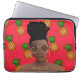Capa Para Notebook Mulher Negra, Matizes Dourados, Padrão de Abacaxi,