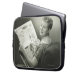 Mulher que senta-se na poltrona, lendo o jornal, sorrindo, (marcas de B&W) | George | AssetID: 57539557
