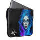 Add a supernatural touch to your laptop or tablet with this sleeve, which features an otherworldly female with ice blue eyes and delicate floral tattoos on her face, artistically emerging from blue and purple flames. Personalize with a name!