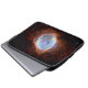 A Nebulosa do Anel Sul em luz quase infravermelha, capturada do Telescópio Espacial James Webb. Esta cena foi criada por uma estrela anã branca - os restos de uma estrela como o nosso Sol depois de derramar suas camadas externas e parar de queimar combustível através da fusão nuclear. Essas camadas externas agora formam as conchas ejetadas ao longo dessa visão. Nessa imagem da Câmera Near-Infravermelho (NIRCam), a anã branca aparece no canto inferior esquerdo da estrela central brilhante, parcialmente escondida por um pico de difração. A mesma estrela aparece - mas mais brilhante, maior e mais vermelha - na imagem do Instrumento Infravermelho de Médio (MIRI). Esta estrela anã branca está enrolada em camadas grossas de poeira, que a fazem parecer maior. Ao longo de milhares de anos e antes de se tornar uma anã branca, a estrela ejetou periodicamente a massa - as cascas visíveis de material. Como se repetíssemos, ela se contraía, aquecia - e então, incapaz de empurrar mais material, pulsado. O material estelar foi enviado em todas as direções e forneceu os ingredientes para essa paisagem assimétrica. Hoje, a anã branca aquece o gás nas regiões internas - que aparecem azul à esquerda e vermelho à direita. Ambas as estrelas estão acendendo as regiões externas, mostradas em laranja e azul, respectivamente. Par na região circular no centro e você verá um cinturão assimétrico e instável de material. É aqui que se encontram duas tigelas que compõem a nebulosa. (Nessa visão, a nebulosa está num ângulo de 40 graus.)