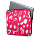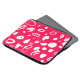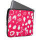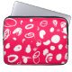 Este saco de eletrônicos mostra desenhos brancos de abstrato impressionantes em uma superfície vigorosa de fúcsia.