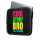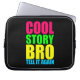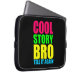 Cores brilhantes como neon.. letras grandes em blocos contra um fundo preto. História Legal, Irmão! Diga de novo! Letras cor-de-rosa quente, verde limão, amarelo e aqua em negrito.