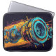 Safeguard your mobile workstation with a sleeve that looks as powerful and advanced as the technology inside it. This premium laptop case features an incredibly aggressive, high-energy illustration of a grunge mechanical turbine. The horizontal format of the design wraps flawlessly across the protective sleeve, showcasing the vibrant cyan and orange colors, diagonal speed lines, and raw, cyberpunk aesthetic in all their glory.