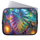Folhas tropicais brilhantes em néon vívido, criando uma atmosfera futurista e mesmerizante da selva