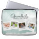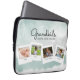 Sua mãe vai adorar esta colagem de fotos em aquarela de seus netos. Essa design em cor d'água verde e cinza lê: Netos tornam a vida magnífica, e podem ser personalizados com quatro fotos e nomes da família. Uma maneira divertida e na moda para guardar seu laptop.