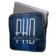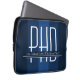 Uma bolsa de laptop de presente de graduação em PhD com um esquema de cor azul e branca. Simplesmente personalize o nome, adicione esta bolsa de laptop ao seu carrinho e entregue-o ao formando. Design de Feriado de bolsa de laptop de PhD de Graduação Azul | ©Melissa Patton - Designer