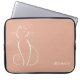 Gato branco minimalista numa bolsa de laptop de fundo rosa. Personalize esta bolsa de laptop elegante com o seu nome.