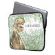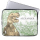 Um divertido T-Rex, um dinossauro assustador com o fundo da folhagem da selva Jurássica. O perfeito caso de laptop de meninos personalizados para o rapaz da escola que ama dinos. Esta diversão adiciona seu nome de design de dinossauro pré-histórico com modelo fácil de usar para que você possa criar um caso de laptop personalizado. A ilustração divertida tiranossauro rex aquarela foi pintada manualmente em matizes marrons dando um divertido design pré-histórico. Arte original da artista Catherine Sweetman