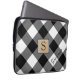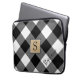 Búfalos roxos preto e branco verificam bolsa de laptop com monograma no quadrado castanho central com bordas brancas e pretas. Personalize ainda mais com um nome ou outro texto personalizado no canto inferior direito em uma fonte moderna de script editável (ou exclua o texto de amostra para deixar o vazio de área). ALTERAÇÕES: Altere o estilo, tamanho, cor e posicionamento da fonte de texto para uma aparência personalizada clicando em PERSONALIZAR MAIS na seção PERSONALIZAR. Entre em contato com o designer por meio do Zazzle Chat ou makeitaboutyoustore@gmail.com se você quiser que este design seja modificado, em outro produto ou quiser coordenar itens.