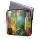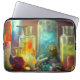 A bolsa de laptop de arte fantasia apresenta itens encontrados na mesa de trabalho do Alquimista, incluindo garrafas de poções mágicas e elixires. A IA gerou pintura digital.
