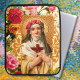 O Rosa santo de Lima está rodeado por um arranjo de lindas flores coloridas e trabalho de rolagem de ornamentados. Um pano de fundo da broca amarela complementa a elaborada colagem de ilustração.