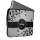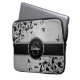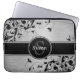Os redemoinhos florais pretos de prata femininos personalizaram a bolsa de laptop. O divertimento, contudo o profissional, esta prata personalizada escovaram a foto de aço e o teste padrão floral dos redemoinhos do preto É IMPRIMIDO em uma bolsa de laptop de PANO. Faça uma indicação de forma com seus inicial e nome do monograma em um Tag circular com uma linha preta em um teste padrão floral dos redemoinhos e em um fundo de prata contínuo.