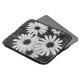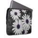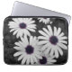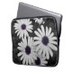 Esta imagem mostra um aglomerado de margaridas com pétalas brancas e polos púrpuros-azuis em greve. O fundo e a folhagem estão em preto-e-branco, criando um efeito colorido seletivo que enfatiza as cores vívidas dos centros das flores. O contraste entre os arredores dessaturados e as delicadas flores dá à imagem uma qualidade artística, quase surreal, destacando a beleza e a complexidade da natureza.