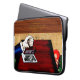 Esta bolsa de laptop tem uma pintura digital original de um batedor de números de patentes, enquanto debaixo da mesa esconde o sempre assustador Troll de patentes. Ajustados de 15" laptop ou tablet + 3 campos de texto personalizados na parte inferior para nome, etc.