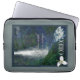Uma pintura digital de uma queda d'água encontrada ao longo da trilha de alternância de Multnomah Falls na Zona Cênnica da Garganta do Rio Columbia, em Oregon. O número branco no canto superior é o ano em que Oregon se tornou um estado. A inscrição branca no centro da pintura, "Ela voa com suas próprias asas", é o lema do estado. Na parte inferior da pintura está uma flor de trilium branca ao lado de Oregon, em letras brancas. Uma simples borda azul escura termina a pintura. Imagem Copyright ©2023 Kimberly J Tilley.