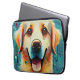 Esta ilustração feliz do Retriever de Ouros é um design excelente para amantes de cães e proprietários de Ouros de Retriever. Ele tem uma cor de fundo azul-esverdeada e se adequa à maioria das combinações de cores.