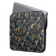 Capa Para Notebook Padrão Azul das Flores Douradas Botânicas