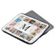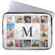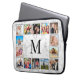 Crie a sua própria bolsa de laptop personalizada de 14 imagens de colagem com as suas imagens personalizadas e monograma num fundo de mármore branco na moda elegante.