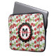 Um padrão de ilustração ai de aquarela de cerejas vermelhas brilhantes, bolsa de laptop personalizada de folhagem verde-sábio.