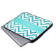 Proteja seu laptop com estilo com esta manga moderna chique. Design apresenta um padrão bonito aqua teal azul-d'água chevron zig-zag, faixa de turquesa e seu nome ou outro texto personalizado em uma simples fonte de tipografia branca. Este elegante e moderno caso de computador faz um presente de na moda para ela.