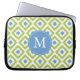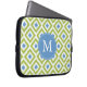 Capa Para Notebook Padrão de Ikat de Diamante Verde Azul Monograma