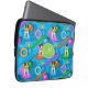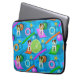 Esta bolsa de laptop neoprene de uma festa de cão branco para um dono de Parson / Jack Russell Terrier apresenta um padrão de quatro diferentes JRTs / PRTs com variadas marcas castanho e preto na cabeça/corpo e uma charmosa cabeça de cão inclinada sobre seus colorido tapetes flutuantes azul, rosa, laranja e limão com uma bola de tênis em uma clara piscina azul de natação, cada vestindo anel de natação colorido (com pequeno padrão JRT) em volta do pescoço e rodeado por macarrão e bolas coloridas de natação e brinquedos de mastigação flutuantes amarelos em forma de peixe-estrela - o monograma é personalizável em um pendante de círculo verde limão - Parson / Jack Russell piscina festa de piscina © katz_d_zynes 2019