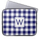 Proteja o seu laptop com uma manga neoprena que contém quadrados azuis-claros, brancos e azuis-marinho numa xadrez de búfalo clássica com um monograma personalizado dentro de um quadrado branco no centro. Personalize-o com a sua inicial na barra lateral. Outras bolsas de laptop também disponíveis. Para ver o padrão design Marinho e Gingham Branco em outros itens, clique na coleção abaixo. Imagem criada digitalmente. Copyright ©Claire E. Skinner. Todos os direitos reservados.