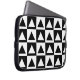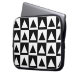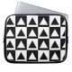 Uma bolsa de laptop na moda com um padrão geométrico de triângulos monocromáticos preto e branco. Esta design inspira-se na arte geométrica moderna ou na arte de op.