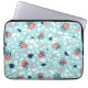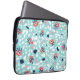 Divertida bolsa de laptop terrazzo com um padrão geométrico sem costura com olhos estranhos em algumas das pedras abstrato de mármore em cores azuis e corais.