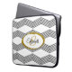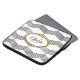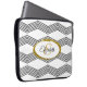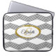Esta bolsa de laptop neoprena é projetada com fundo de zague preto e branco, com um oval de brilho dourado, com um monograma inicial e nome próprio. Preencha os campos modelo para alterar o nome e a letra inicial monograma ou remova o nome ou a letra inicial deixando apenas um. É uma ideia de presente de excelente para um estudante profissional ou universitário.